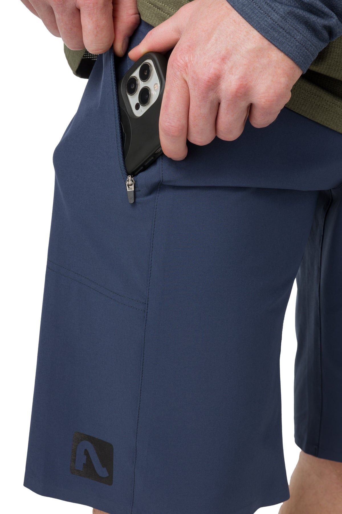 Pour le short Goodson léger et résistant, nous avons pris un tissu extensible et léger et ajouté une ceinture profilée et basse qui ne glisse pas. Portez-le par-dessus un chamois pour le sentier ou seul pour une bière et un burger. Le tissu personnalisé prêt pour le VTT dévie les branches tout en évitant les sentiers forestiers, sèche rapidement et reste en place peu importe où vous êtes sur le sentier. Le tissu est léger et respirant pour les longues montées et a de l'extensibilité pour la mobilité. Vous obtiendrez une entrejambe de 11,5 pouces de longueur mi-longue et beaucoup de couverture pour dévaler la descente, plus des poches zippées sur les cuisses qui peuvent contenir votre téléphone et une braguette profilée et sans bulk sans matériel en métal, juste une fermeture Velcro. Il est traité avec un répulsif durable à l'eau.